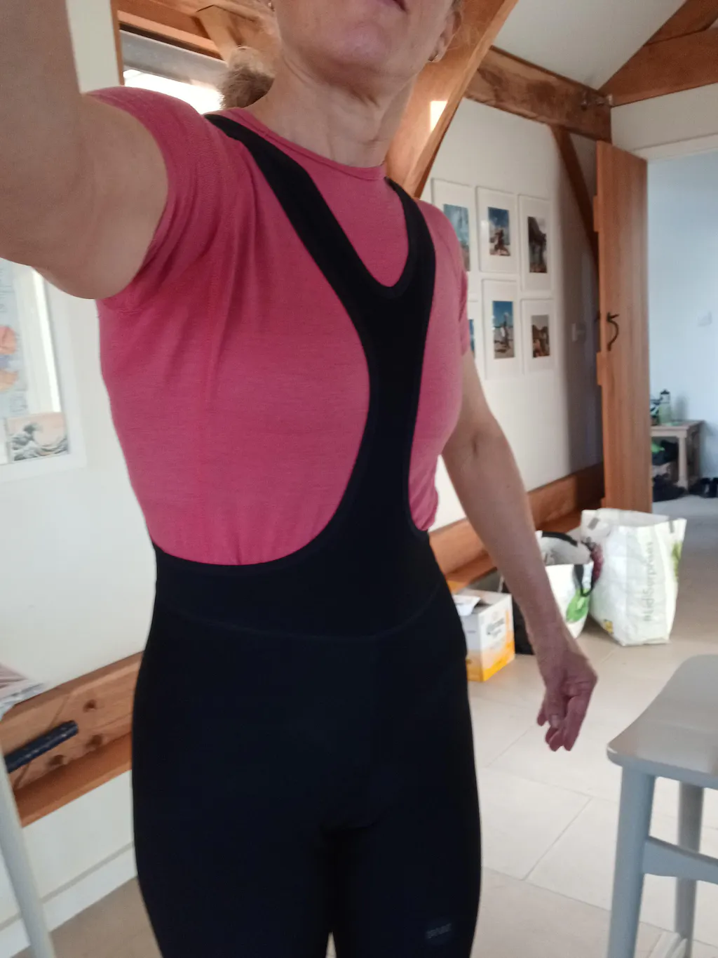 - Bend your knees more while pulling down the bibs even more at the rear.